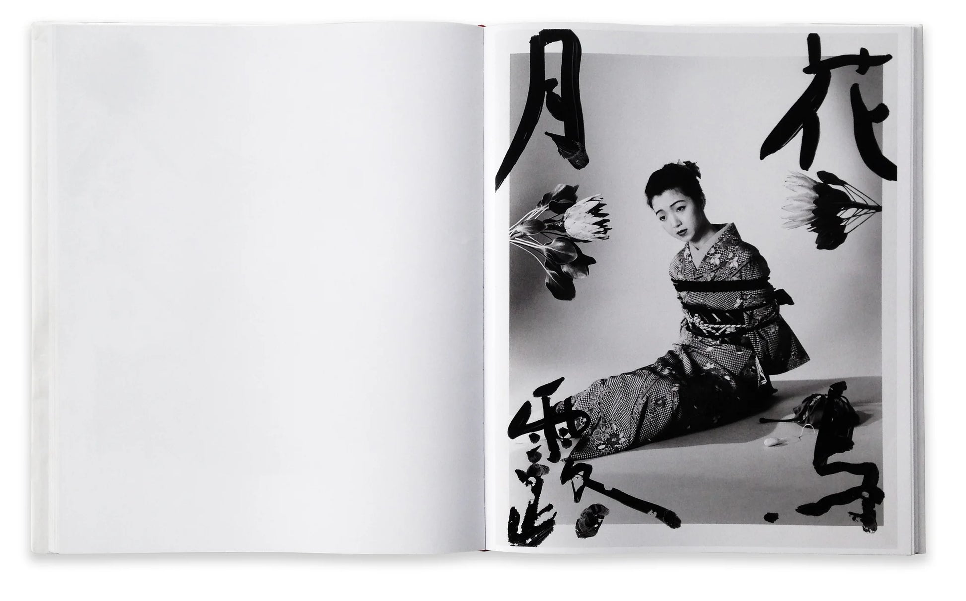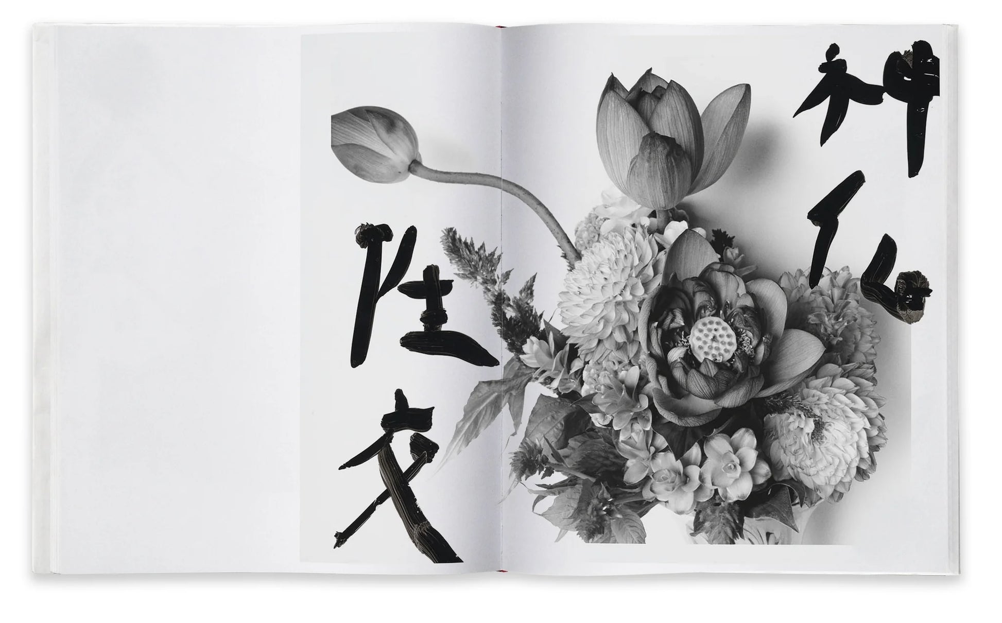 “Marvelous Tales of Black Ink brings Araki’s language of photography and his games with words together into the same frame. The Kanji (Japanese logographic characters) painted directly and with equal intensity onto both the surfaces of explicit nudes and floral compositions raise the stakes of the symbolic associations between flowers and sexuality beyond even that proposed by Georges Bataille in his classic essay “The Language of Flowers”.